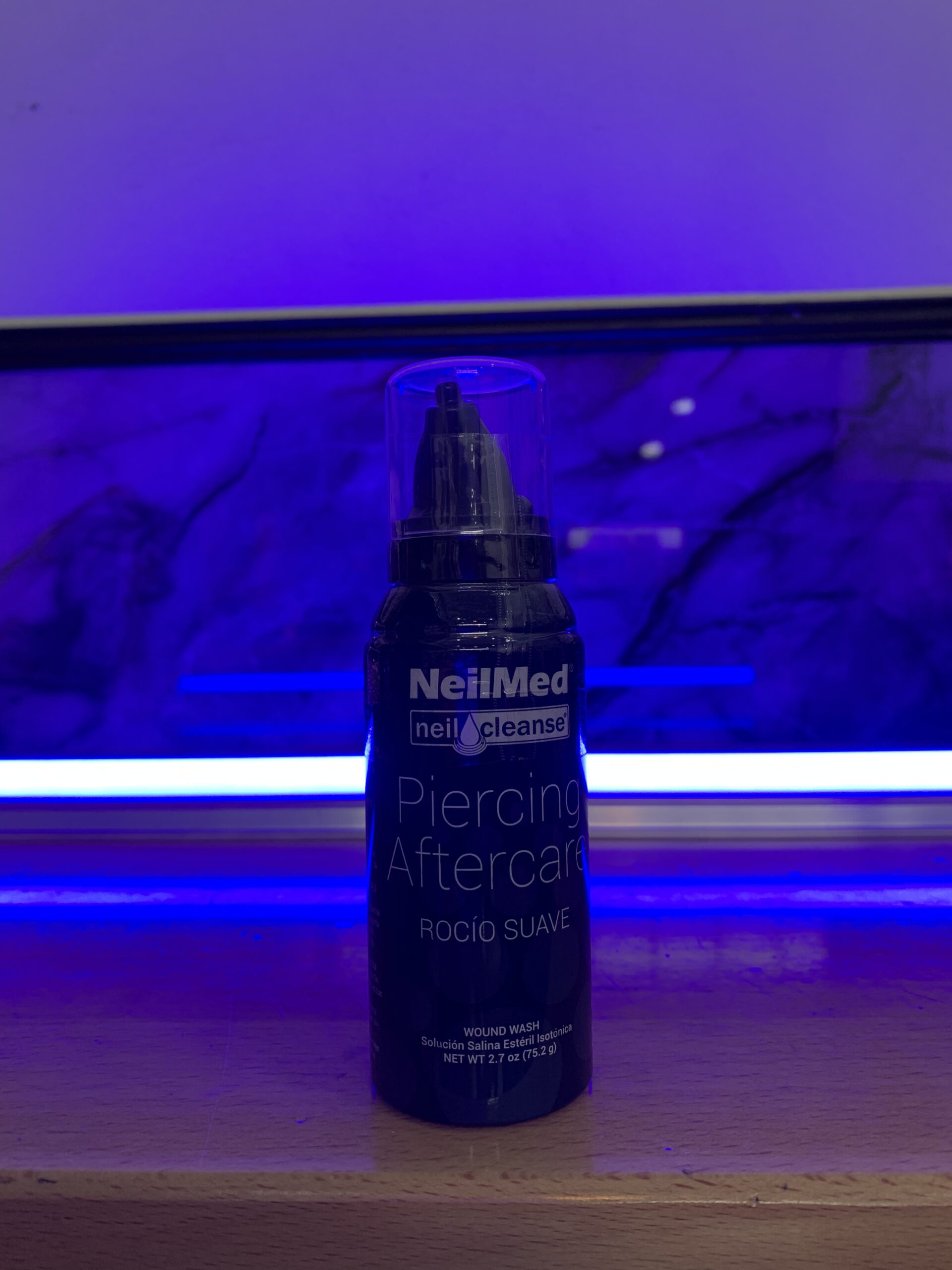 Neil Med piercing aftercare, rocío suave, solucion salina esteril isotonica.