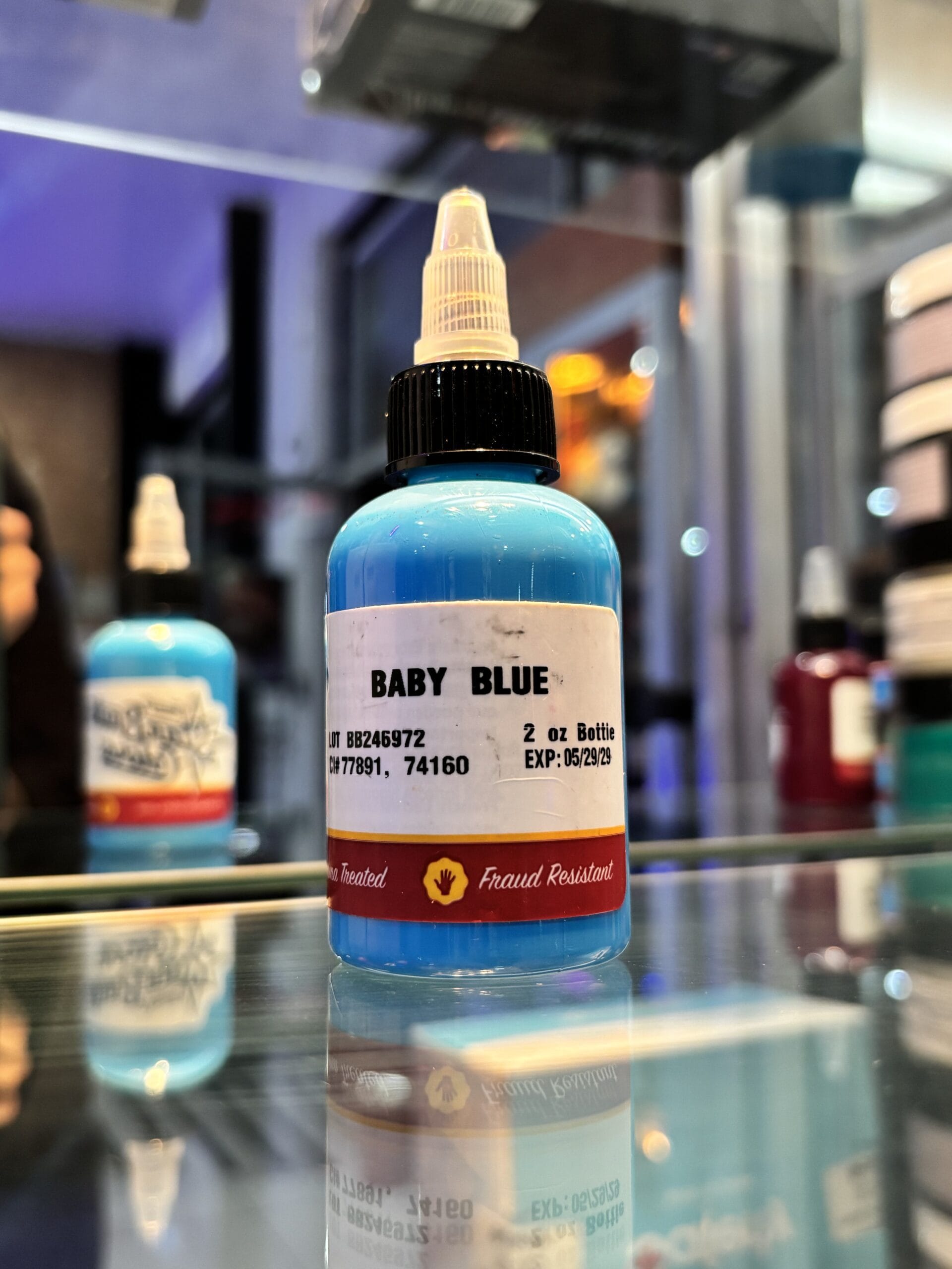 Baby Blue es una tinta profesional para tatuaje de azul claro y suave, perfecta para detalles delicados y fondos limpios. Su pigmentación permite un control preciso.