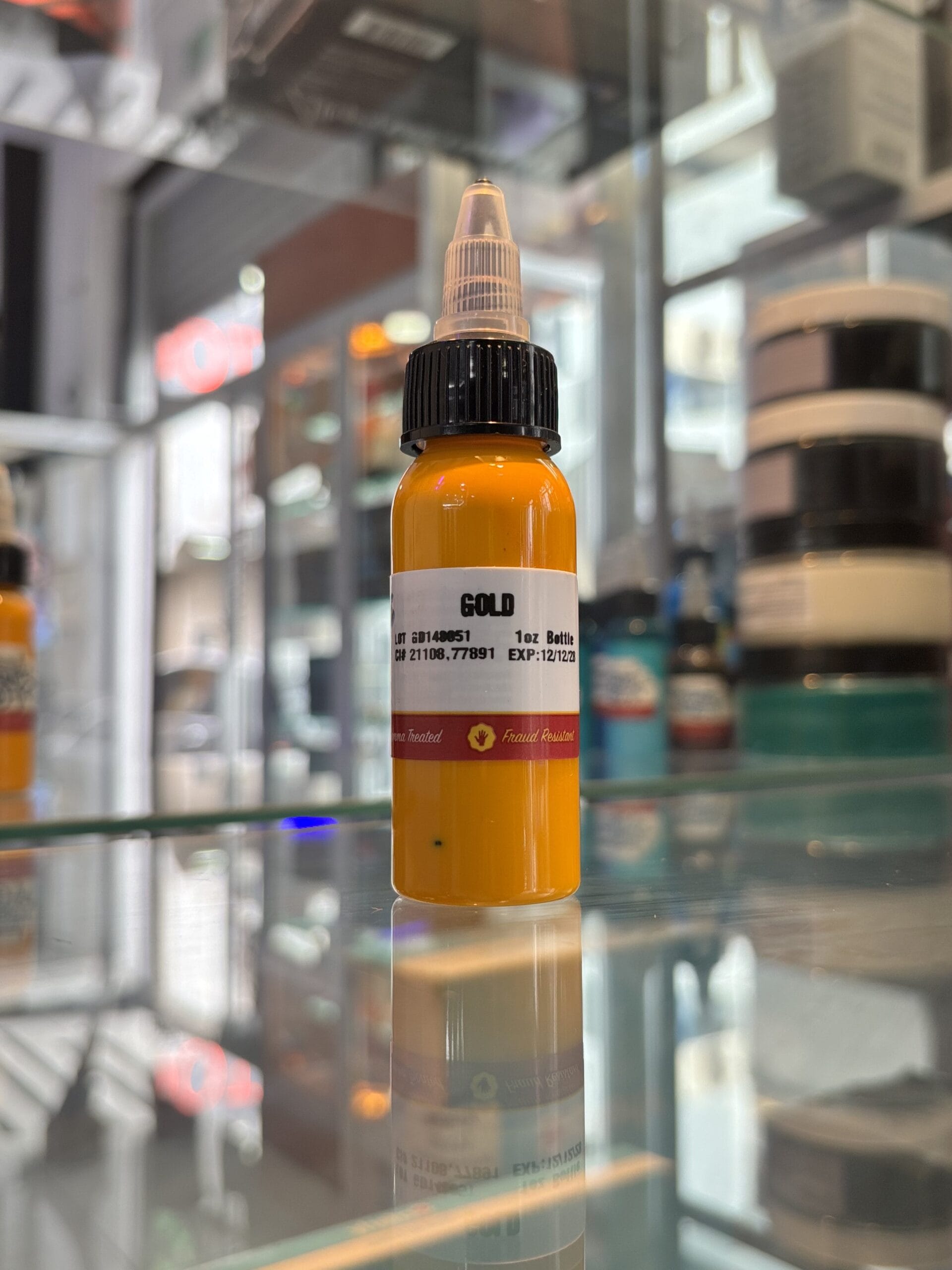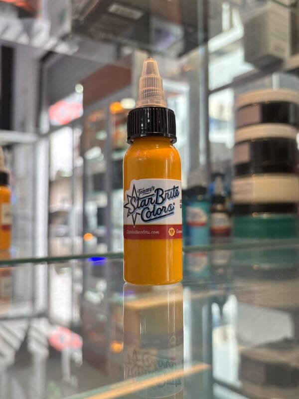 Gold es una tinta profesional para tatuaje de amarillo dorado metálico visual, ideal para detalles luminosos y efectos llamativos.
